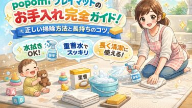 「popomi プレイマットのお手入れ方法ってこれで合ってる?」「アルコール除菌しても大丈夫?」「カビや匂いが出ないか心配…」こんなお悩みはないですか?結論からお伝えすると、popomi プレイマットのお手入れは『水拭き+重曹水』が基本。ア...